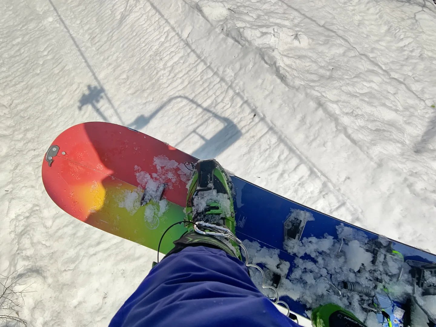 スプリットボード、本来はバックカントリー用、シールを付けて歩いて登るために板が割れるのですが、ゲレンデで全く別の使い方を発見しました。