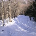 当初、堂平近辺に目標を定めていたのだが、白石峠付近まで上がっても日陰に多少雪がある程度でとても滑れるような状況ではい。予定を変更しさらに上を目指すと、路面はいきなり圧雪orアイスバーンとなる。途中、大野峠直前で、スタックして林道を塞いでいる車を救助。ノーマルタイヤでチェーンもつけず、よくここまで上がって来たもんだ。無事に下界へ戻れただろうか…