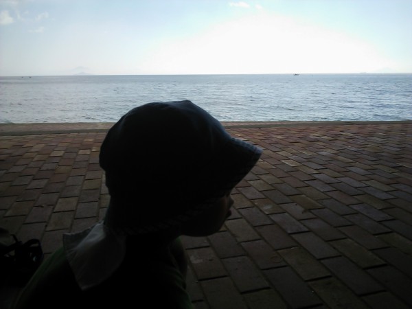 息子、海の青さに負けないくらいブルーな気分の模様。