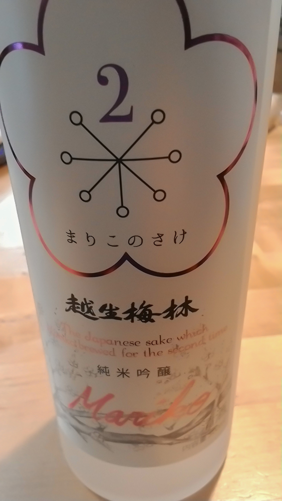 帰りに立ち寄った佐藤酒造(「越生梅林」の蔵元)で入手した「まりこのさけ」。