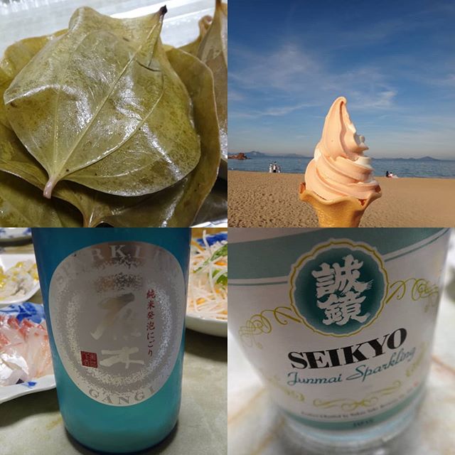 柏餅の葉が丸い由宇トマトのソフトクリーム雁木スパークリング誠鏡スパークリング#美味しかった #柏餅 #トマトソフトクリーム #雁木スパークリング #誠鏡スパークリング #潮風公園