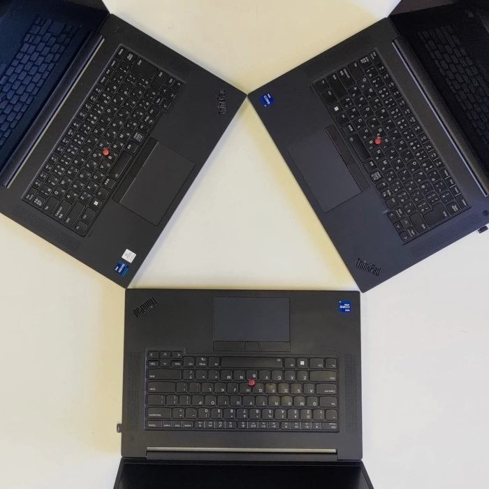 Thinkpad P1 Gen4三兄弟。Lenovoの軽量ワークステーションです。自分は中古で入手して1年ほど使用、かなり気に入ってしまい、この度、他の社員用に2台入手しました。3〜4年くらい前の機種ですが、奇跡のほぼ新品を格安でゲット。古くてもウチの会社の業務程度なら問題無しです。